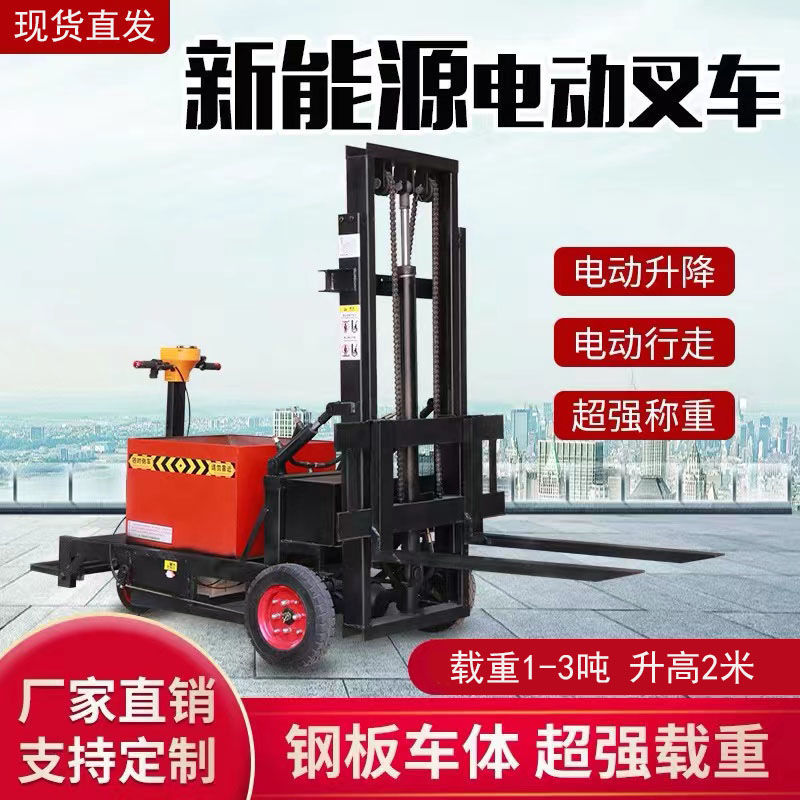 山阳县小型电动叉车1吨站驾式2吨液压升高铲车全自动仓储堆高车